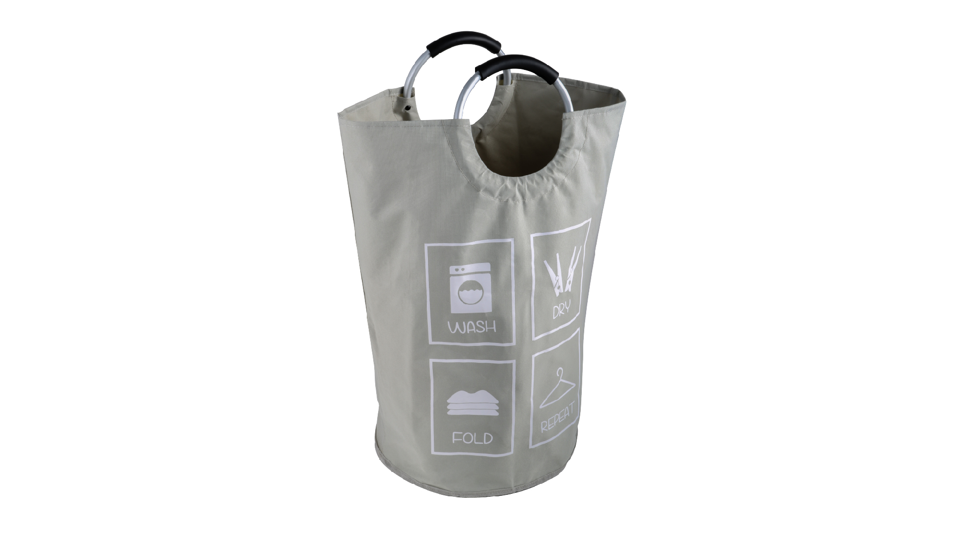 Корзина для белья изготовлена из прочного и долговечного полиэстера, отвечающего требованиям влажного помещения. Для удобства использования корзины предусмотрены дюралюминиевые прорезиненные ручки в виде кольца.   Нейтральный цвет и приятная фактура делают корзину эстетически привлекательным дополнением интерьера ванной комнаты.