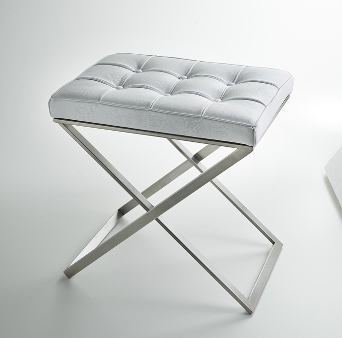 Стул 3SC Lino & Lone со стежкой шгв 500*360*500 цвет-белая кожа никель сатинированный матовый LONE-C/NX/01