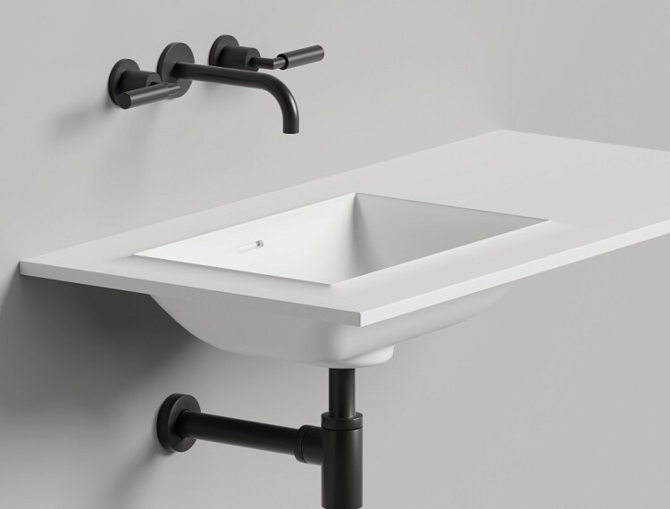 —Столешница Salini Onda Edge Square шгв 1000*500*100 с интегрированной раковиной цвет-белый 14022061M/1000*500/1 hole for the mixer