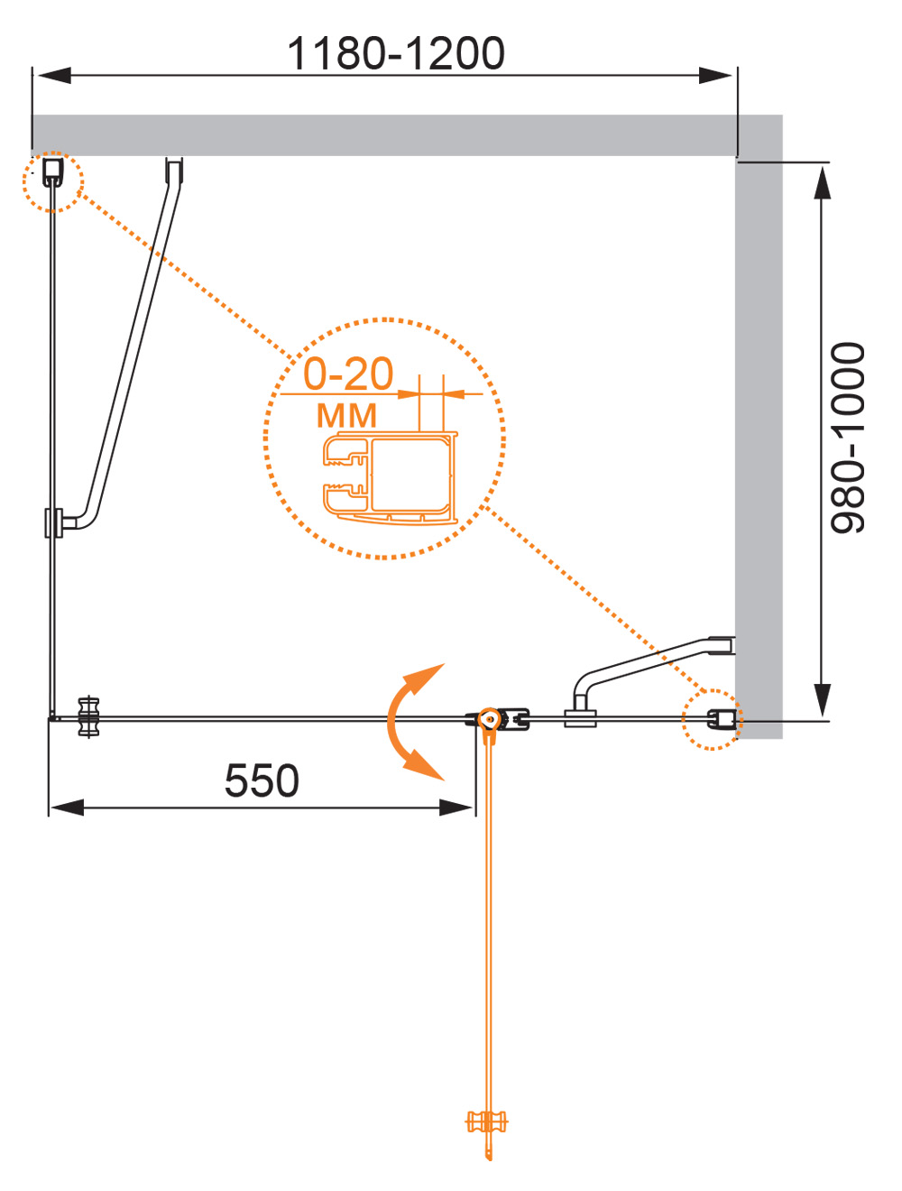 —Душевой уголок CEZARES ELENA-W-AH-1-120/100-P-Cr-R