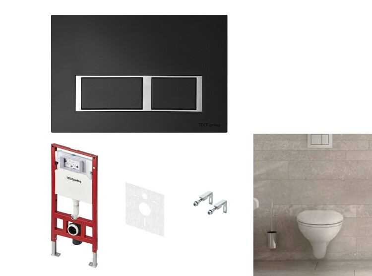 —Комплект TECE TECEbasic унитаз+инсталляция+клавиша смыва цвет унитаза-белый цвет клавиши-черный матовый с хромированным контуром клавиш K955202WCB
