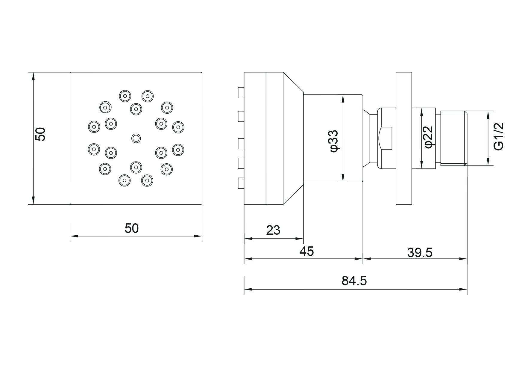 Боковая форсунка 50*50 AQUATEK, матовый черный AQ2098MB