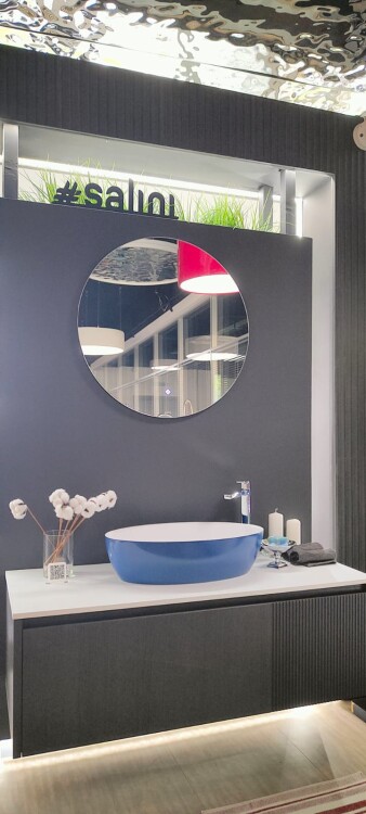 —Комплект мебели Salini Domino тумба + 2коврика + подсветка + раковина + донный клапан + зеркало цвет тумбы-дуб графит раковины-RAL5000м Salini Domino Set