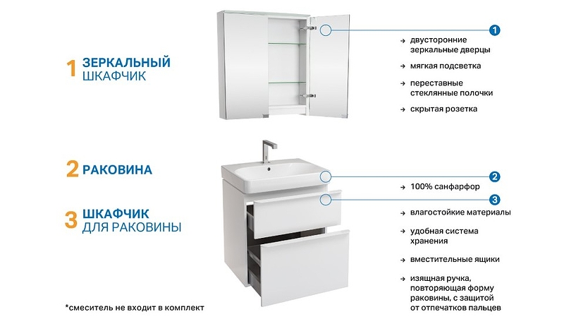 Тумбы с раковинойТумбы под раковинуКонсоли для ванной комнатыШкаф-зеркалоШкафы для ваннойШкафы-пеналыЗеркала в ваннуюСтолешницы для ванной комнатыКомоды для ванной