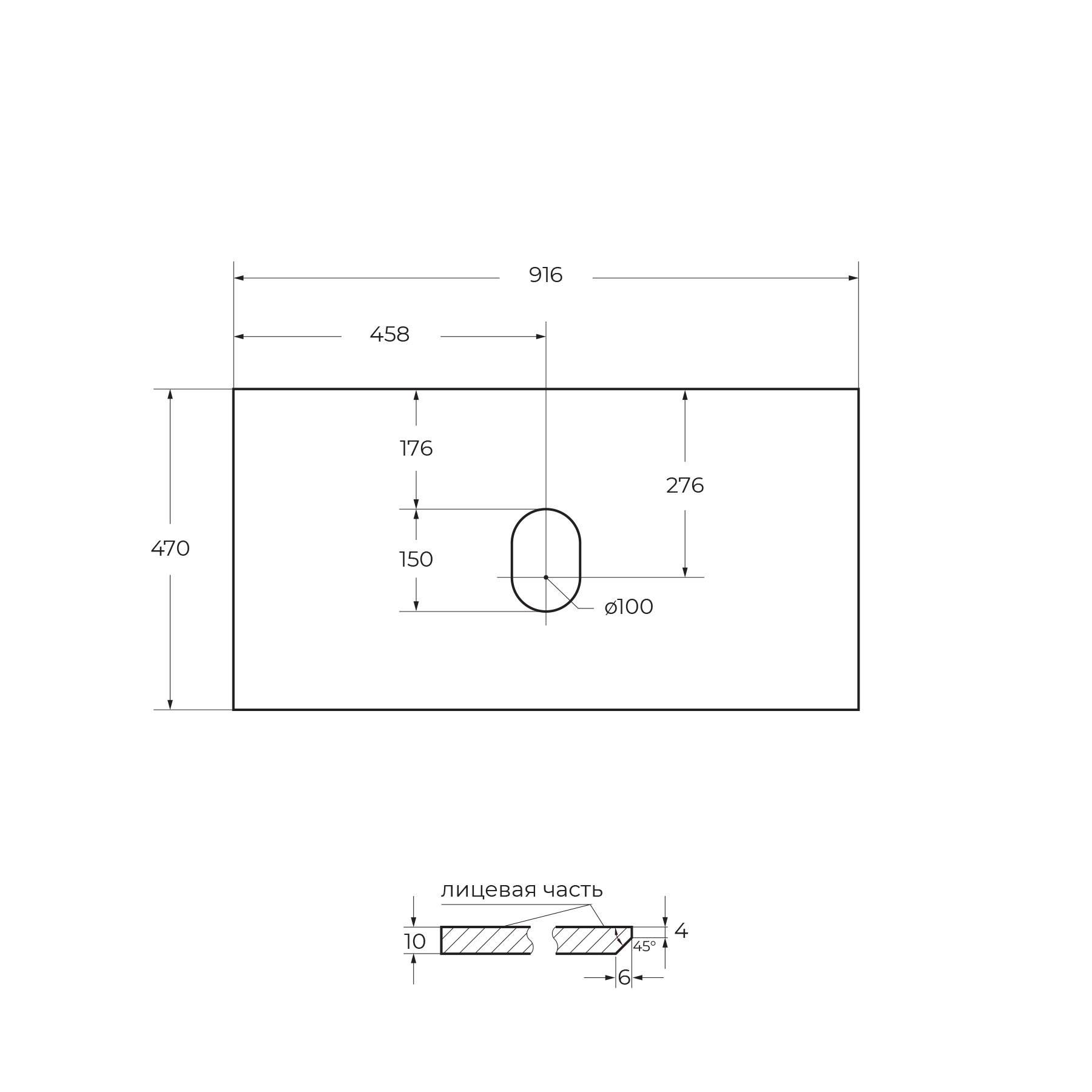 —Столешница из керамогранита без отверстия под смеситель 916x468 KEP-90-BO-W0 Bianco Opaco