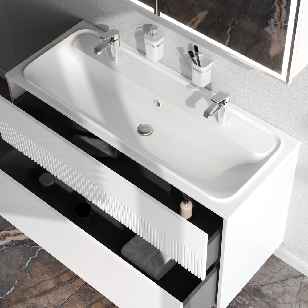 Удобный выдвижной ящик позволит хранить все необходимые средства под рукой. Невероятно мягкое открытие и закрытие благодаря направляющим скрытого монтажа с системой soft close.