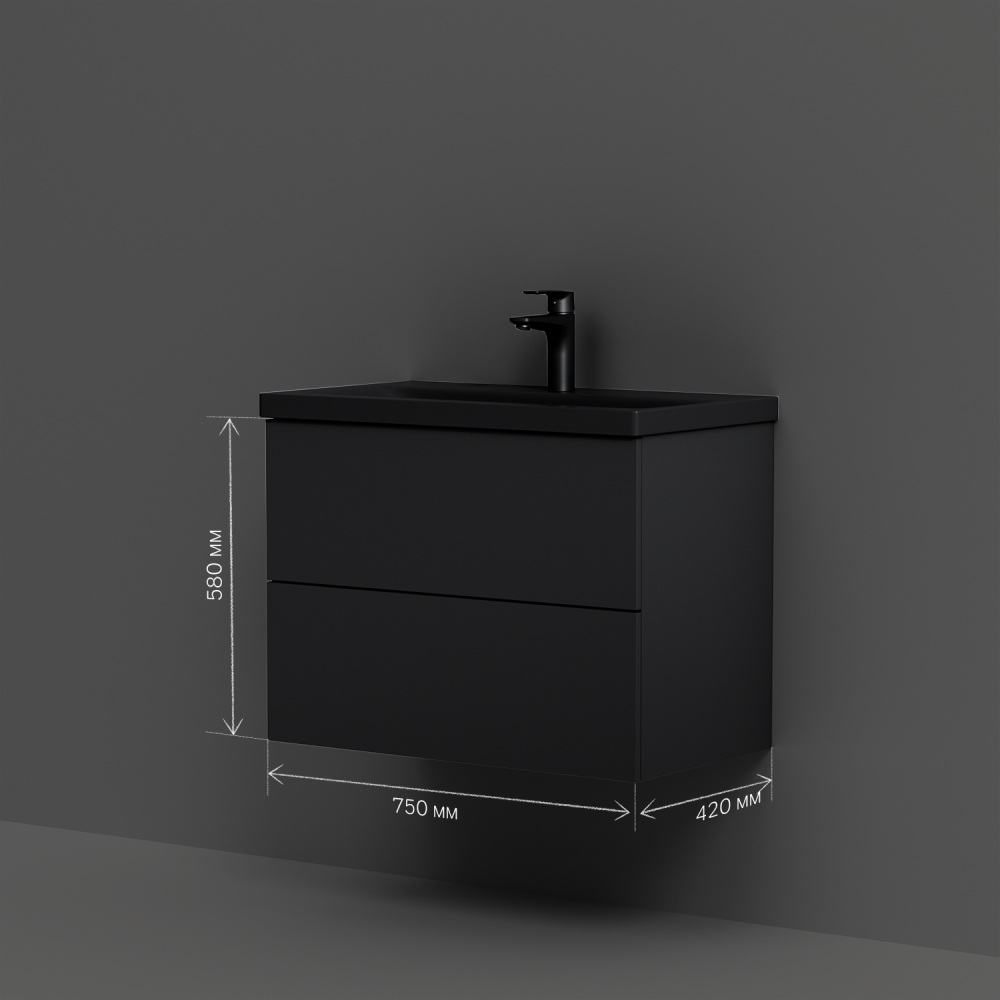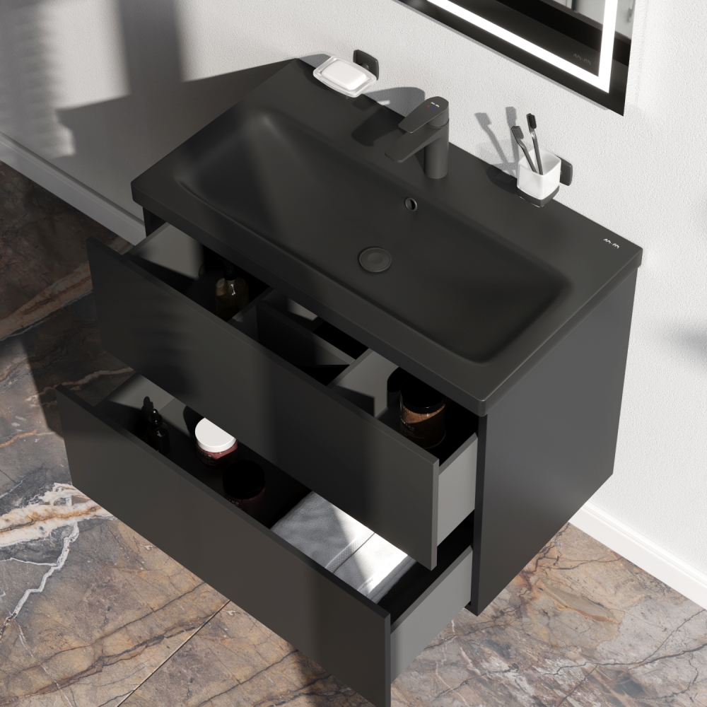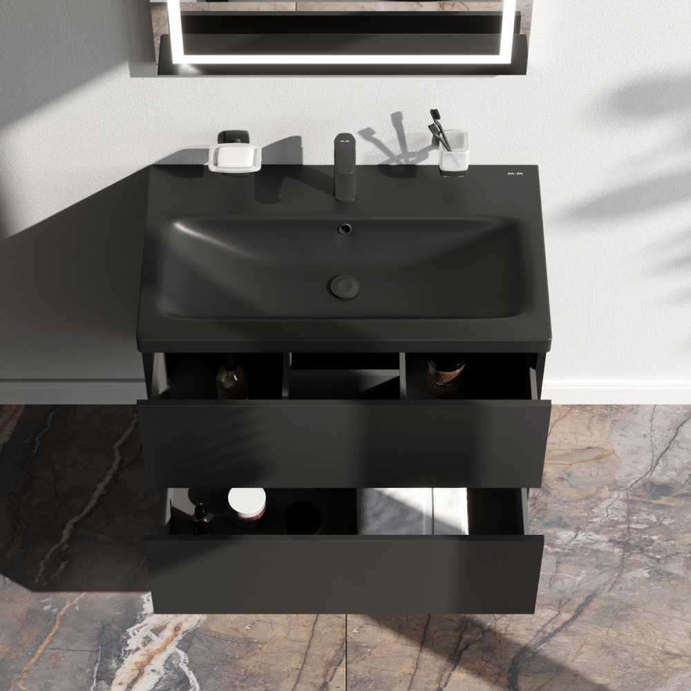 AM.PM M90FHX07522BM GEM, База под раковину, подвесная, 75 см, 2 ящика push-to-open, цвет: черный матовый