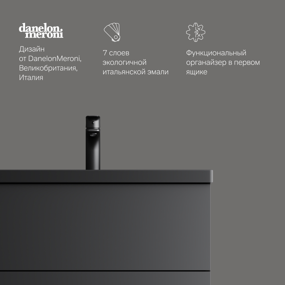 Трендовый дизайн мебели для ванной комнаты Gem не уступает комплектам по гораздо более высокой цене. Теперь цветовая палитра коллекции Gem  дополнена стильным матовым черным цветом!