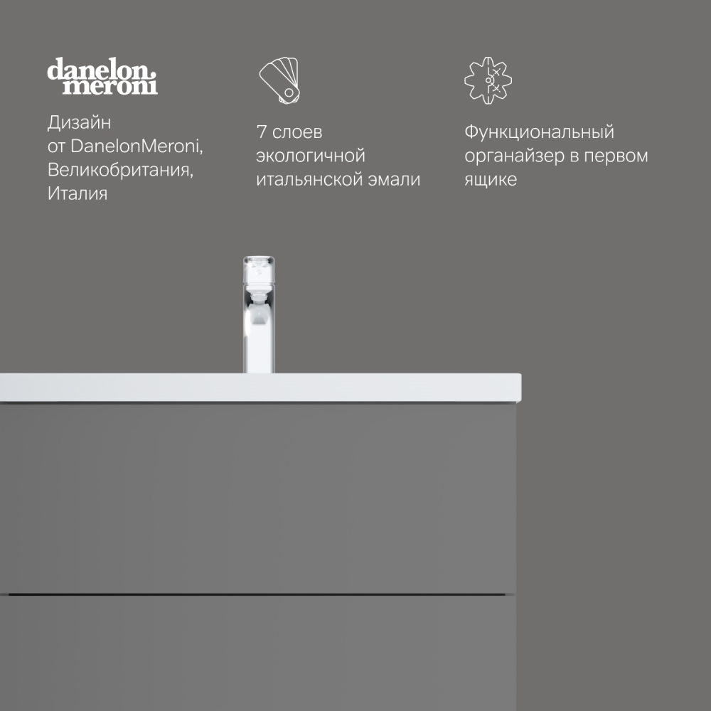Фурнитура push-to-open - открывание ящика нажатием на фасад. Ящики с антискользящим покрытием цвета антрацит – европейский стандарт.
