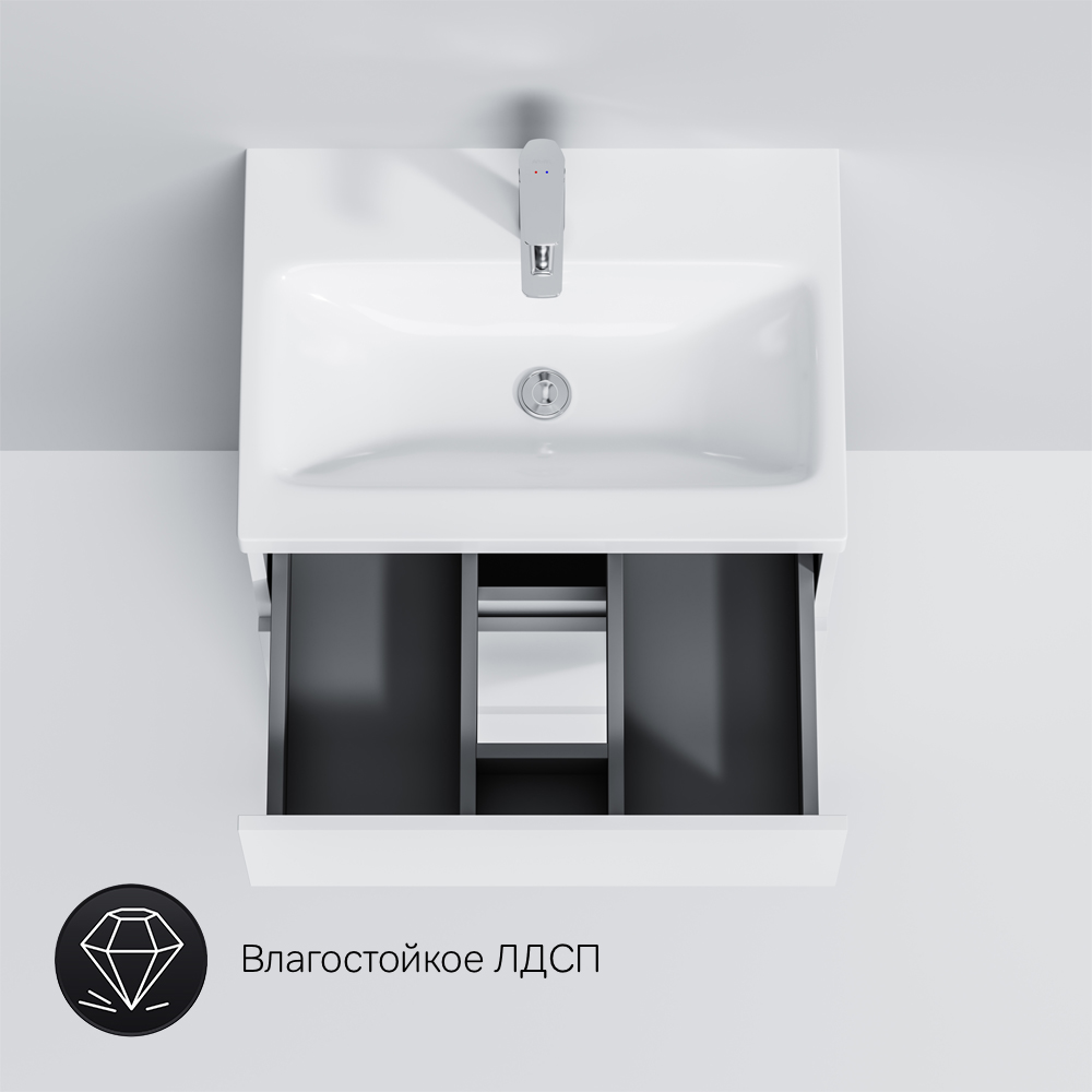 Уникальный нижний ящик базы может быть использован как: выдвижная подставка для детей для удобного мытья рук (выдерживает нагрузку до 60 кг) дополнительная ниша для хранения (экономия пространства ванной комнаты). Ящики с антискользящим покрытием цвета антрацит – европейский стандарт.