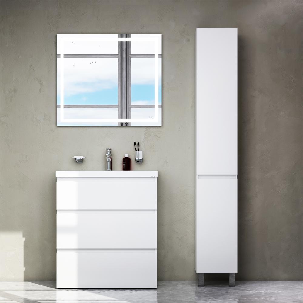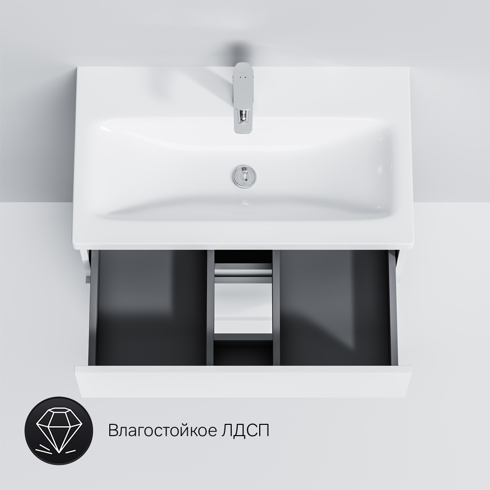 Ящики с антискользящим покрытием цвета антрацит – европейский стандарт. Повышенная влагостойкость мебели: окрашенные в 7 слоев поверхности мебели в цвете белый глянец влагостойкая плита мебели в цвете светлый дуб.