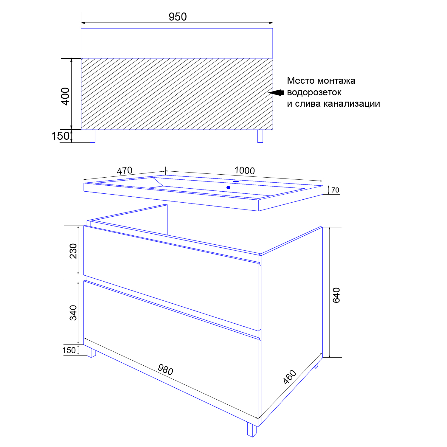 —Комплект Тумба Azario Мила 100 Н 1000х470х860 напольная, с раковиной Monte 100, белый (CS00089954)