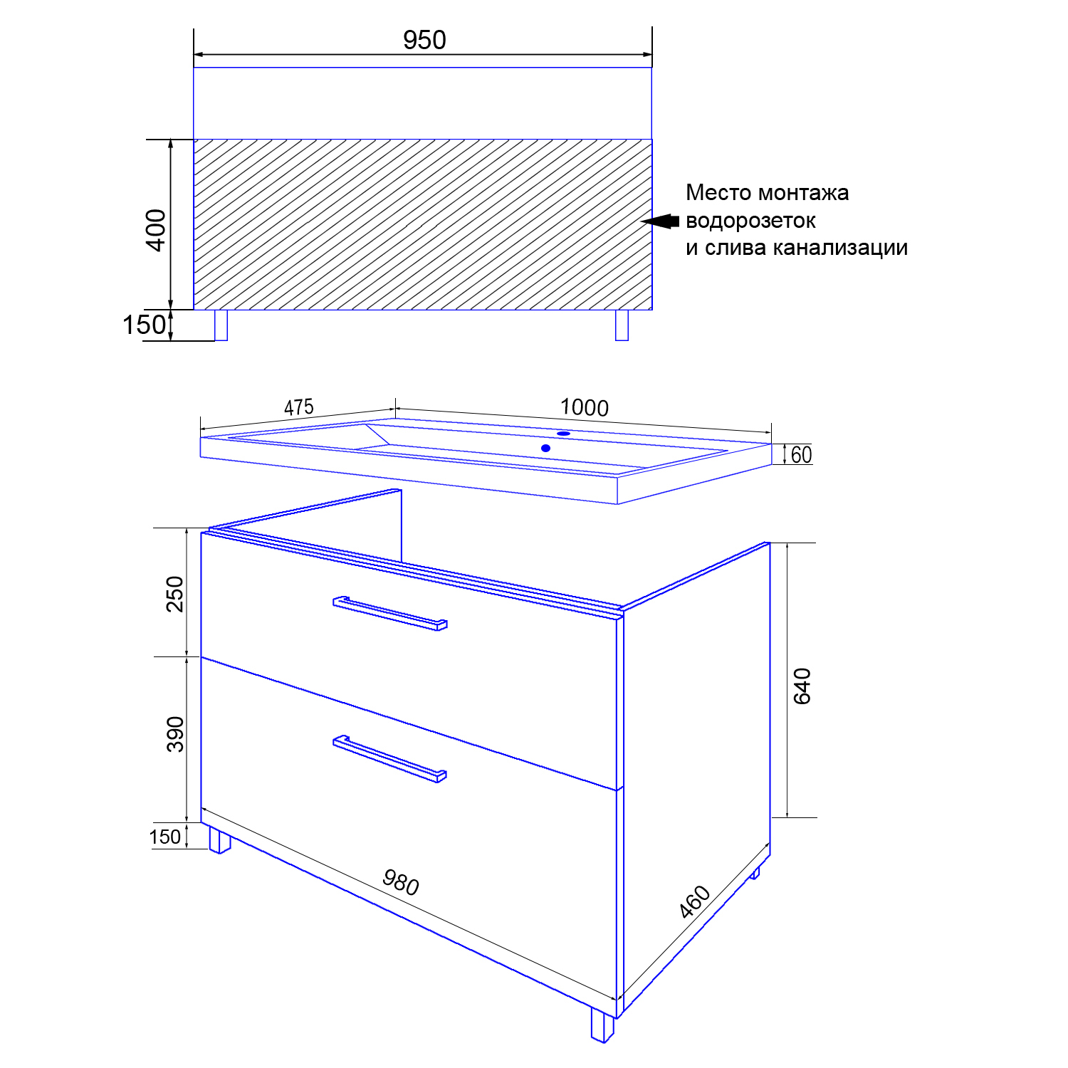—Комплект Тумба Azario Ника 100 Н 1000х475х860 напольная, с раковиной Monte 100, белый (CS00089955)