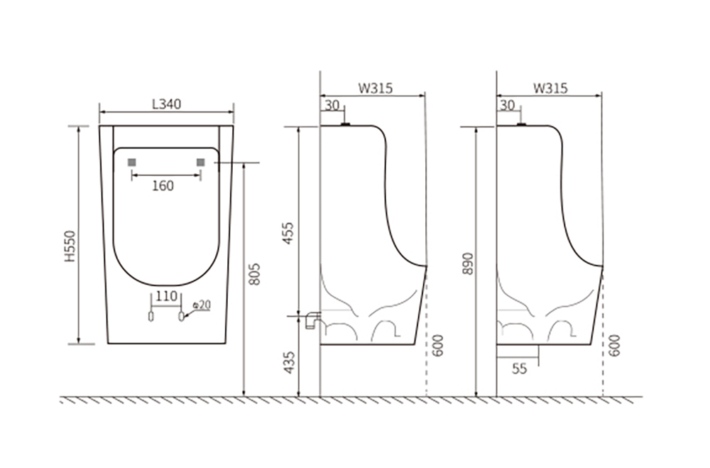 Писсуар Aquatek, горизонтальный выпуск, 340*315*550,белый в комплекте со смывным механизмом AQ3040-F-00
