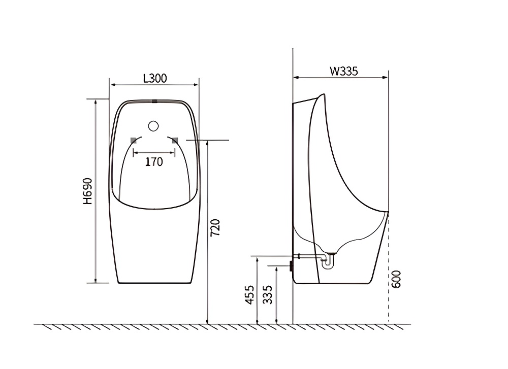 —Писсуар Aquatek, горизонтальный выпуск, 300*335*690, белый, в комплекте с сенсорным смывным механизмом AQ3060-S-00
