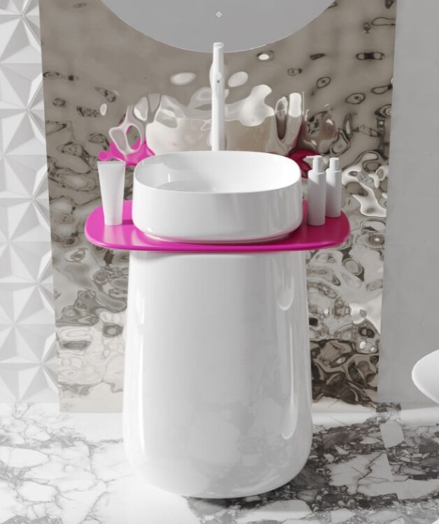 Раковина Salini Oriente Totem шгв 700*490*900 отверстия для смесителя-отсутствуют с полочкой цвет-белый глянцевый/RAL4010 глянцевый 13031011G RAL4010