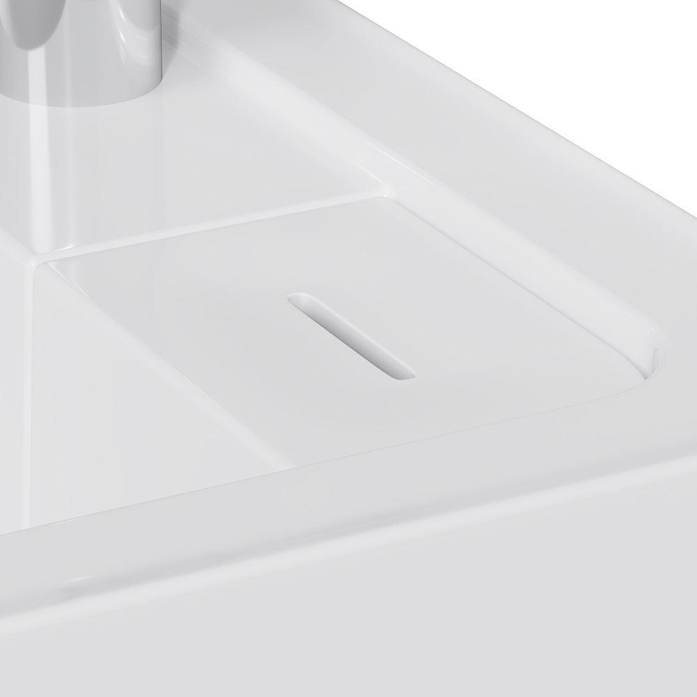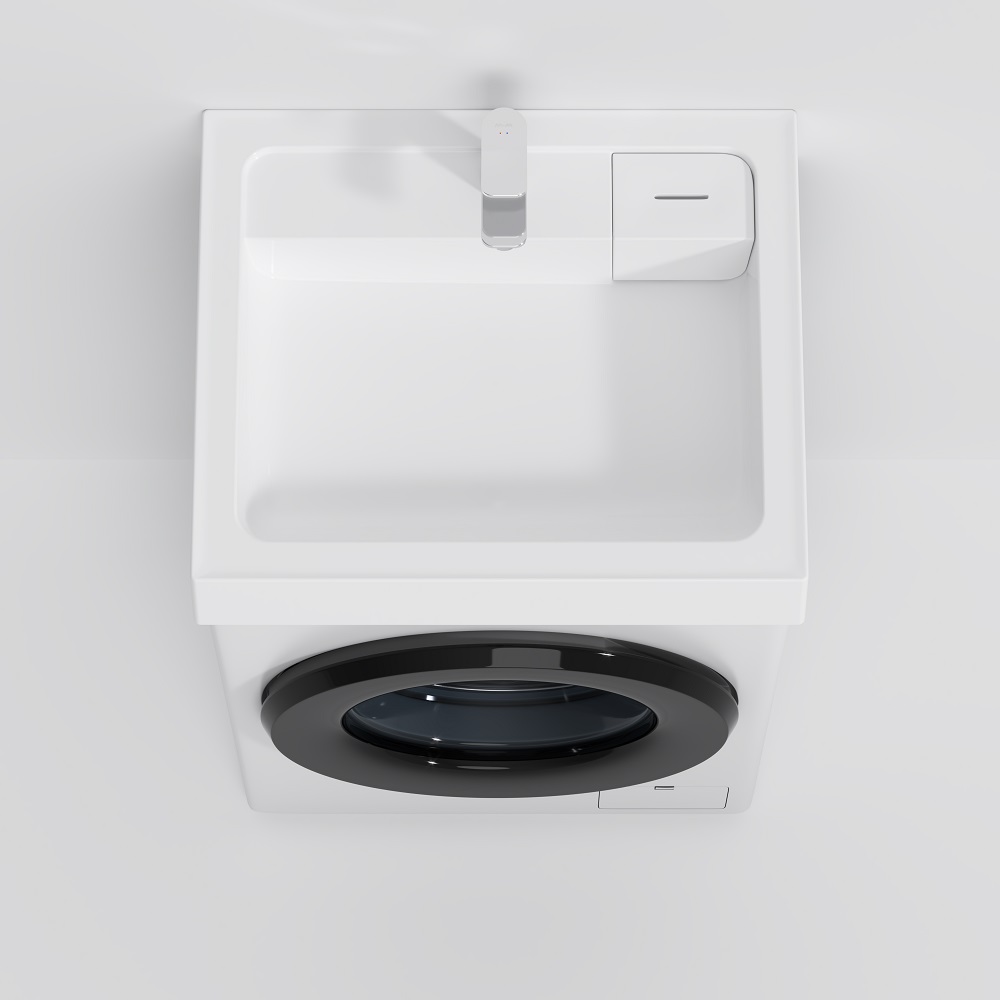 Подходит для интеграции с узкими стиральными машинами (глубиной от 32 до 38 см). Дизайнерская раковина из литьевого мрамора белоснежного цвета с бортиком скрытым сливом и съемной мыльницей. Устанавливается непосредственно над стиральной машиной.