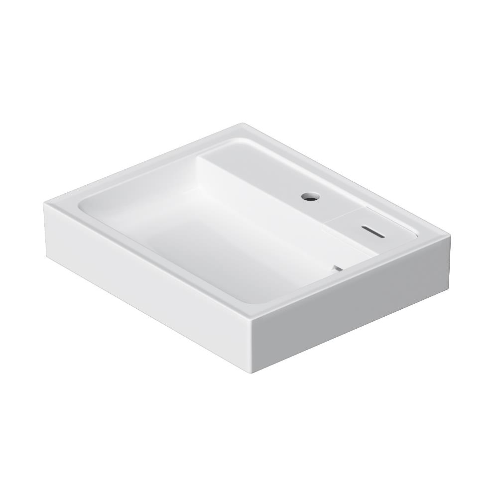 Дизайнерская раковина теперь из белоснежного сантехнического фарфора - долговечного прочного материала обладающего высокой гигиеничностью. Модель имеет защитный бортик от пролива воды скрытый слив и съемную мыльницу.