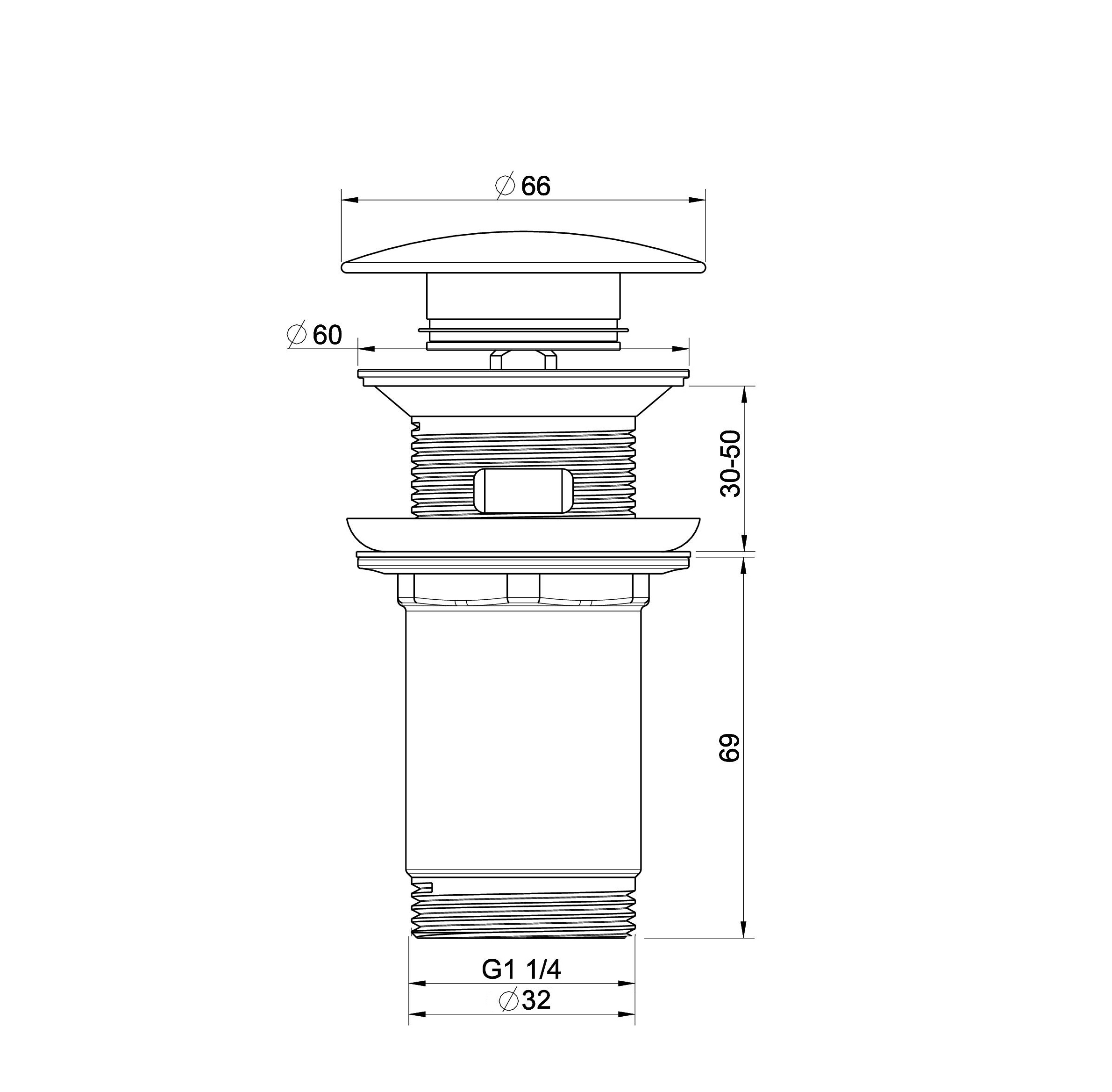 Донный клапан для раковины с переливом 1 1/4 WONZON & WOGHAND, Темный графит (WW-88SS09-BGM)
