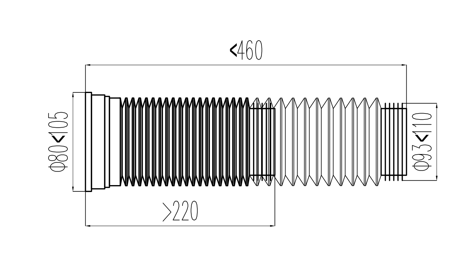 Труба VIANT  для унитаза гофрированная, Ø110 мм, L250-460 мм (VU-362)
