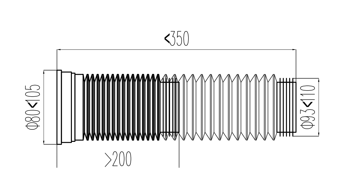 Труба VIANT  для унитаза гофрированная армированная, Ø110 мм, L200-350 мм (VU-364)