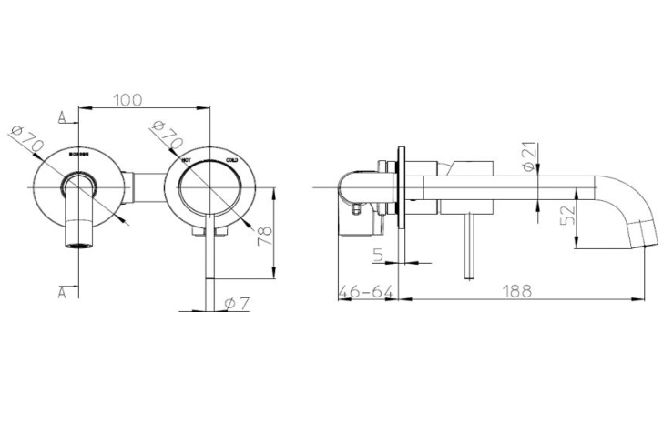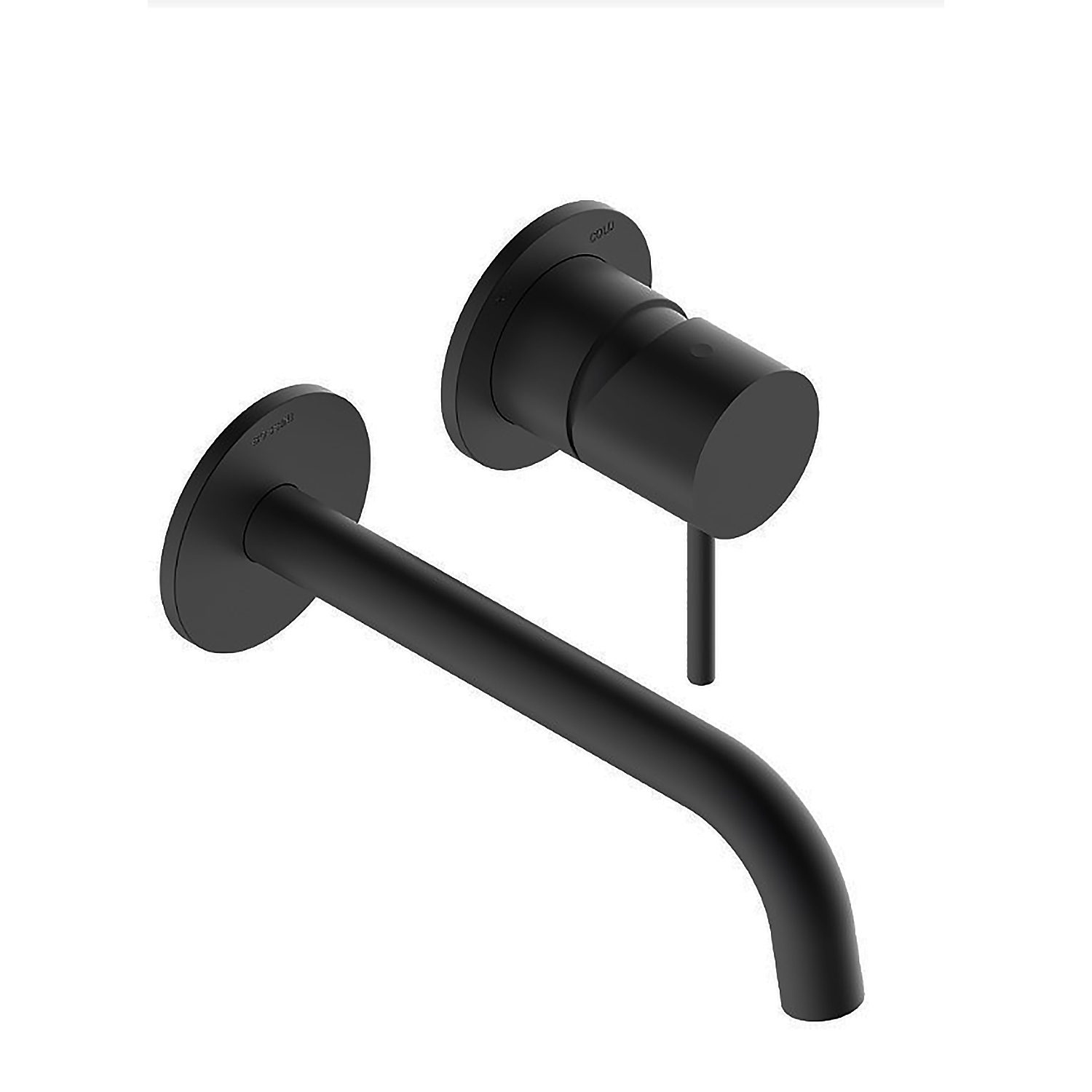 —Комплект Bossini TEO Смеситель для раковины, настенный, встраиваемый, с изливом 18.5 см, черный матовый + Встраиваемая часть однорычажного смесителя (Z00730.073+Z00801)