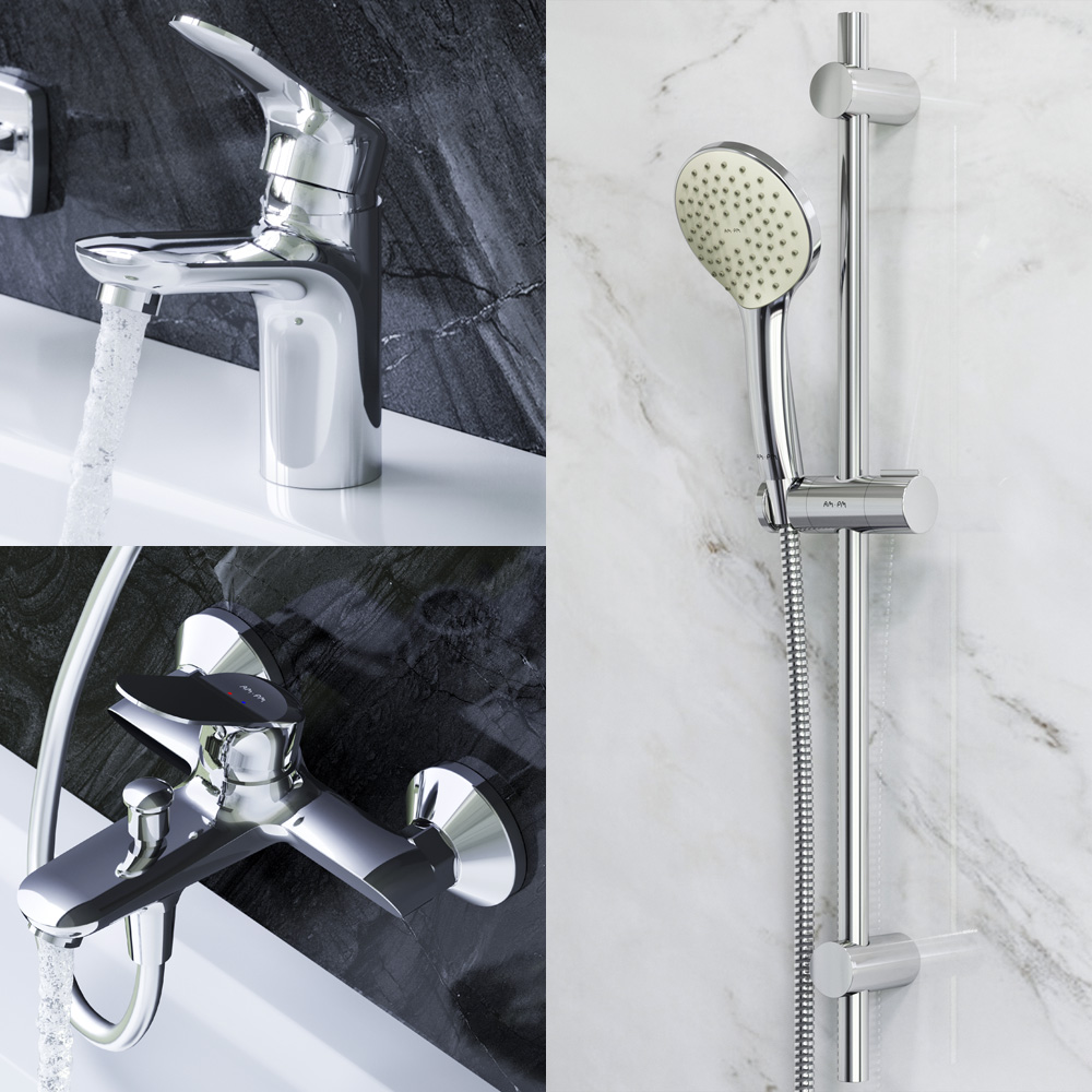 Трендовый дизайн душевого комплекта. Уникальный рисунок и диаметр форсунок – дизайн обеспечивает максимум удовольствия от душа и равномерное распределение воды при любом напоре. Продуманные детали для удобства использования: шарнирное соединение защищает душевой шланг от перекручивания регулируемый в трех плоскостях держатель ручного душа функция Rub&Clean для легкой очистки душевых форсунок. Один режим ручного душа. ""
