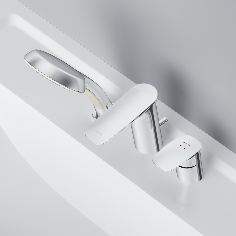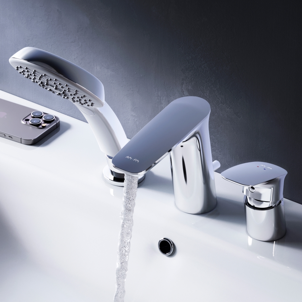 Уникальное решение: смеситель оборудован ручным душем для того чтобы вы могли оценить все преимущества SPA прямо у себя дома. Три режима ручного душа: Spray EnerJet Spray + Massage переключатель режимов Simple Switch Push. Удивительно тактильный ручной душ за счёт материала поверхности soft touch. Функция Rub&Clean для легкой очистки душевых форсунок. Идеальное соотношение пропорций: средняя высота излива и премиальный размер ручного душа обеспечивают максимальный комфорт использования.