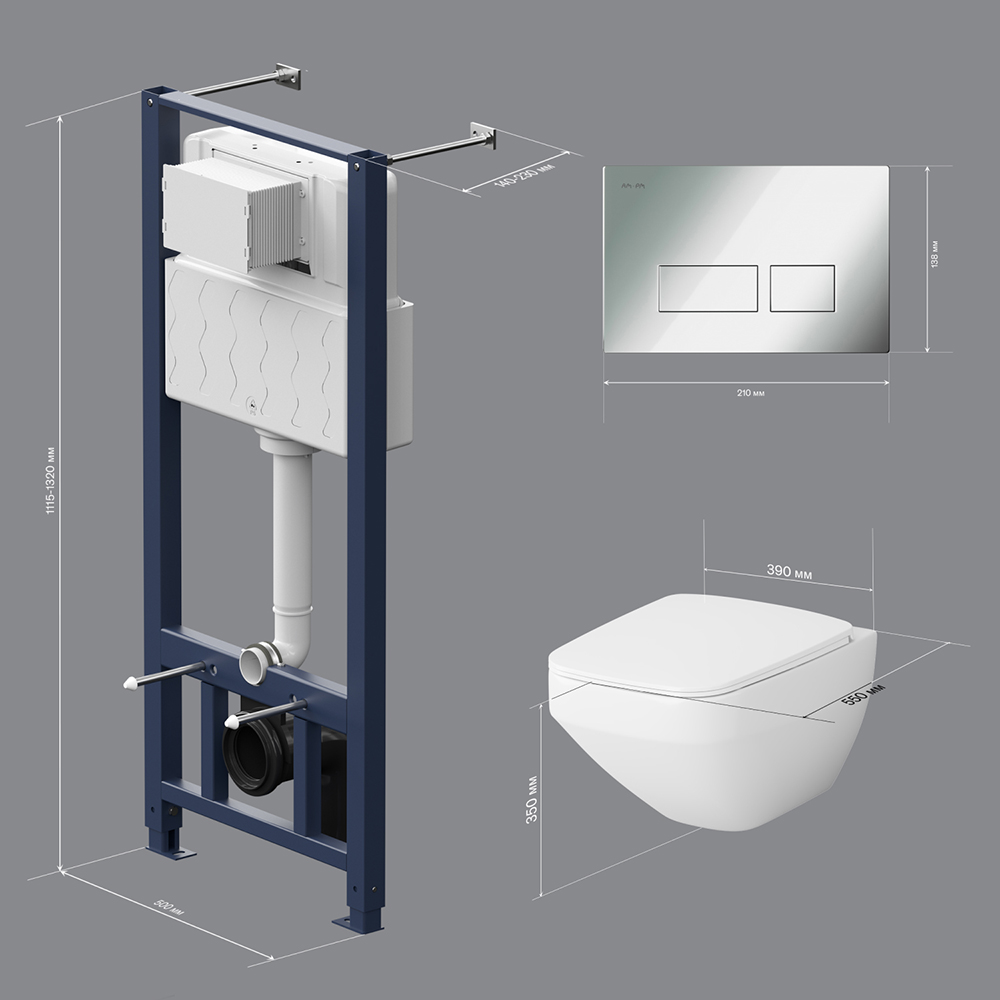 400 кг. Полностью изолированный бачок с качественной двухрежимной смывной арматурой - комфортное использование благодаря низкому уровню шума - менее 20 Дб. Укомплектован пневматической клавишей в цвете глянцевый хром. В комплекте все необходимые патрубки и крепления а также прокладка между унитазом и стеной - звукоизоляция.