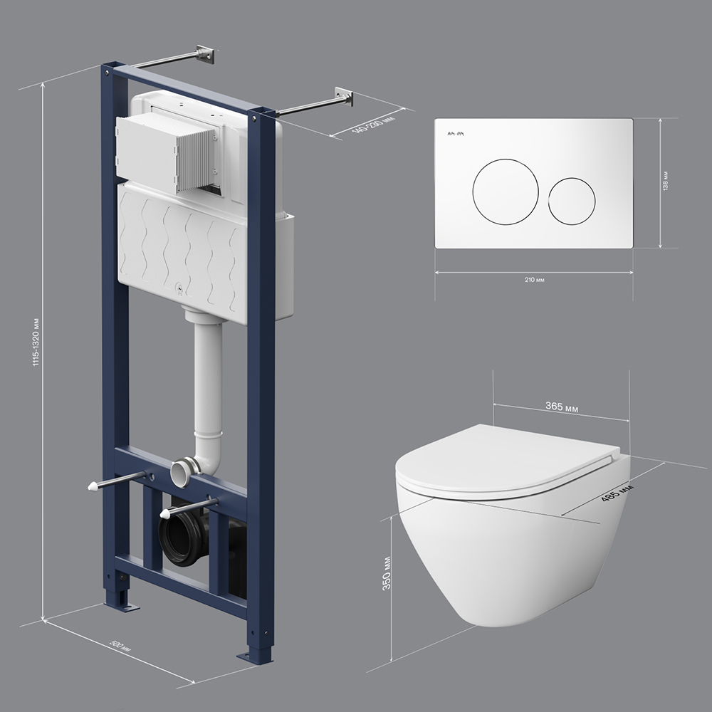 400 кг. Полностью изолированный бачок с качественной двухрежимной смывной арматурой - комфортное использование благодаря низкому уровню шума - менее 20 Дб. Укомплектован пневматической клавишей в белом цвете. В комплекте все необходимые патрубки и крепления а также прокладка между унитазом и стеной - звукоизоляция.