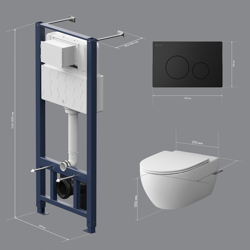 В комплекте все необходимые патрубки и крепления а также прокладка между унитазом и стеной - звукоизоляция.