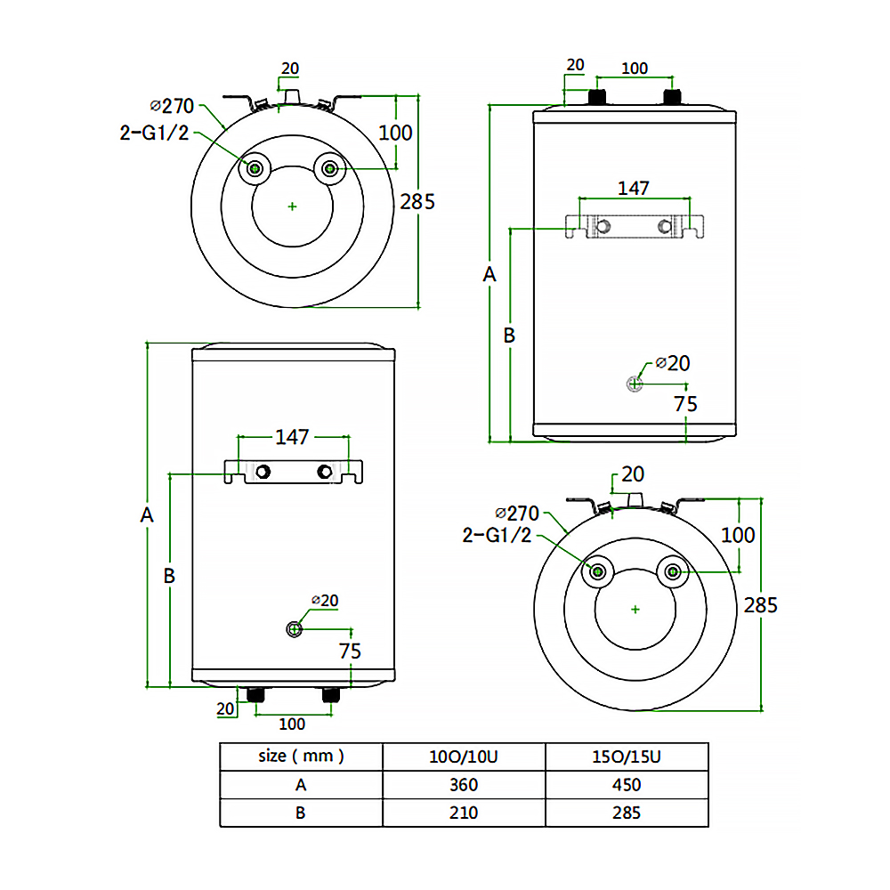 Стальной корпус, внутренний двойной резервуар из нержавеющей стали. Магниевый анод обеспечивает защиту бака и нагревательного элемента от электрохимической коррозии.